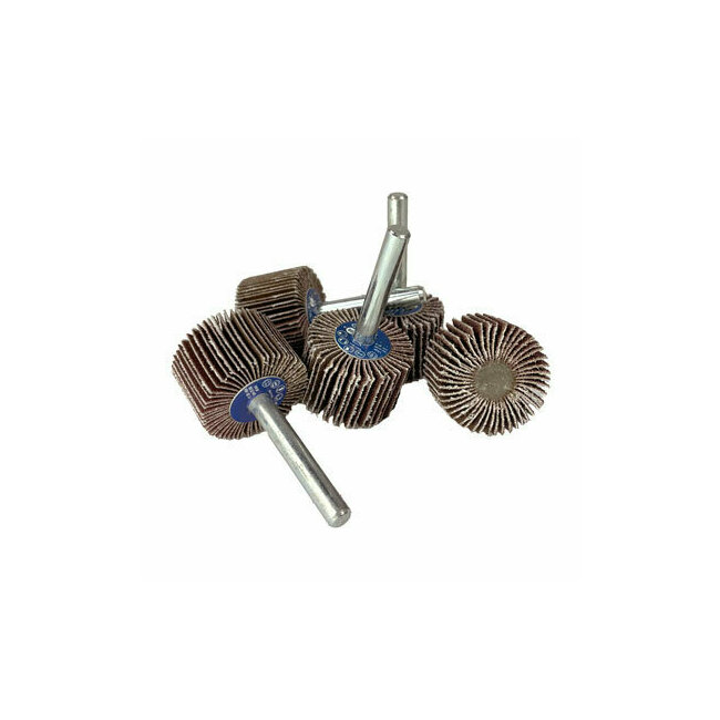 Roue à lamelles sur tige toile abrasive en corindon. Les roues à lamelles sur tige peuvent être utilisées sur des machines pneumatiques, électriques ou flexibles. Les roues à lamelles sont utilisées pour des opérations d’usinage de surface sur des matières telles que le bois, le métal, sur la peinture et les matières plastiques. Elles sont particulièrement indiquées pour les tubes, pour la finition intérieure et extérieure de petites pièces et des surfaces profilées. Elles sont également utilisées pour le biseautage, l’ébavurage et la structuration.